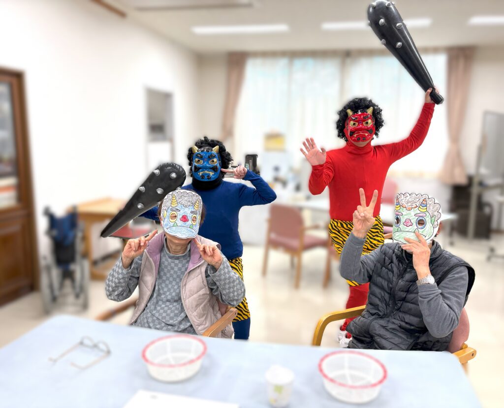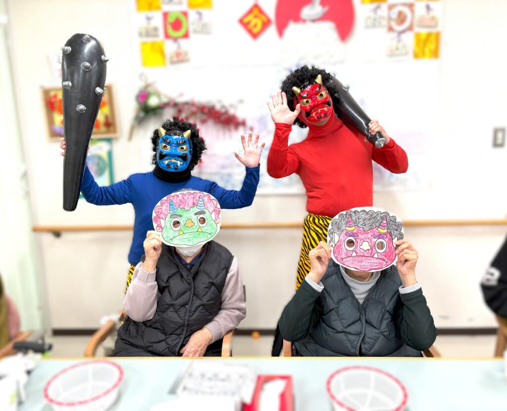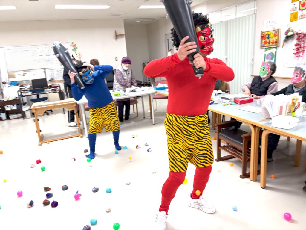 午後は、デイホームさくゆりに赤鬼・青鬼が悪さをしにやってきました!