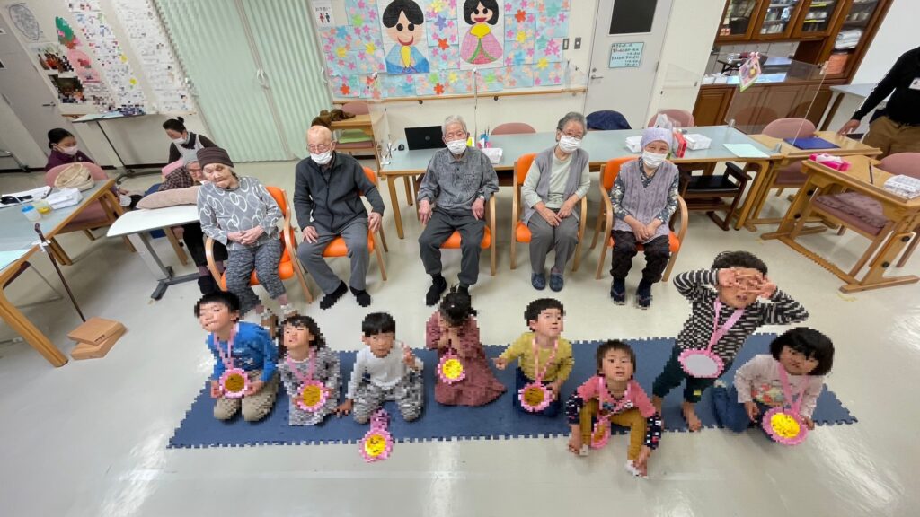 3月22日(水)に、デイホームさくゆりのご利用者様と、利島保育園児との交流会を行いました。